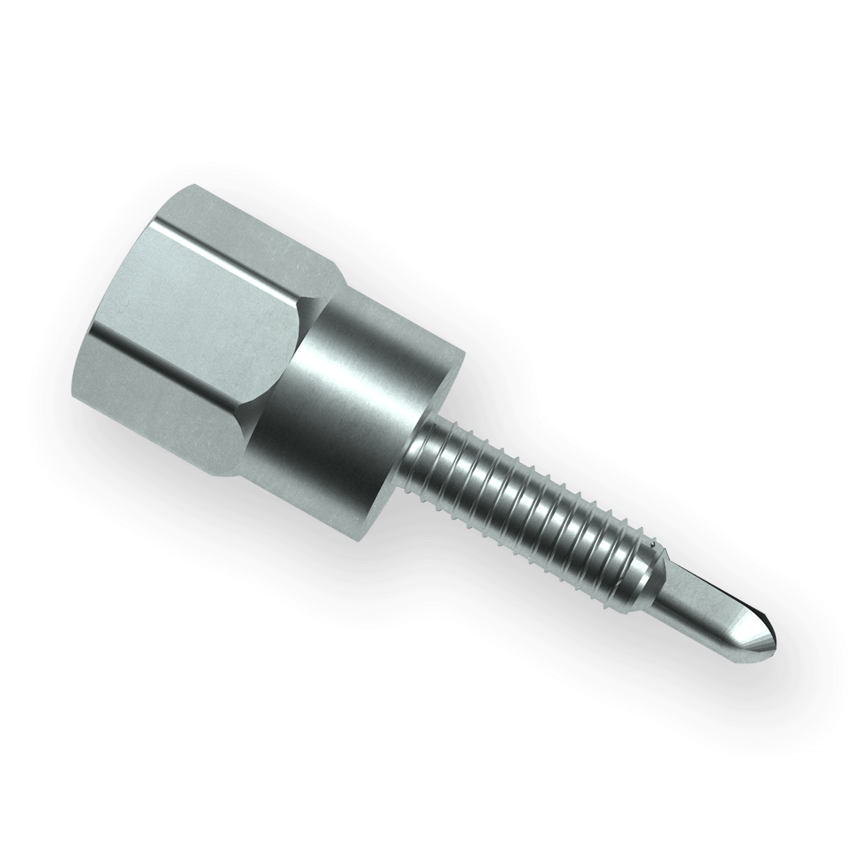 - Press the tip of the anchor against the steel surface and install with a smooth, steady motion until the anchor is firmly seated against the steel. No pre-drilling is required.