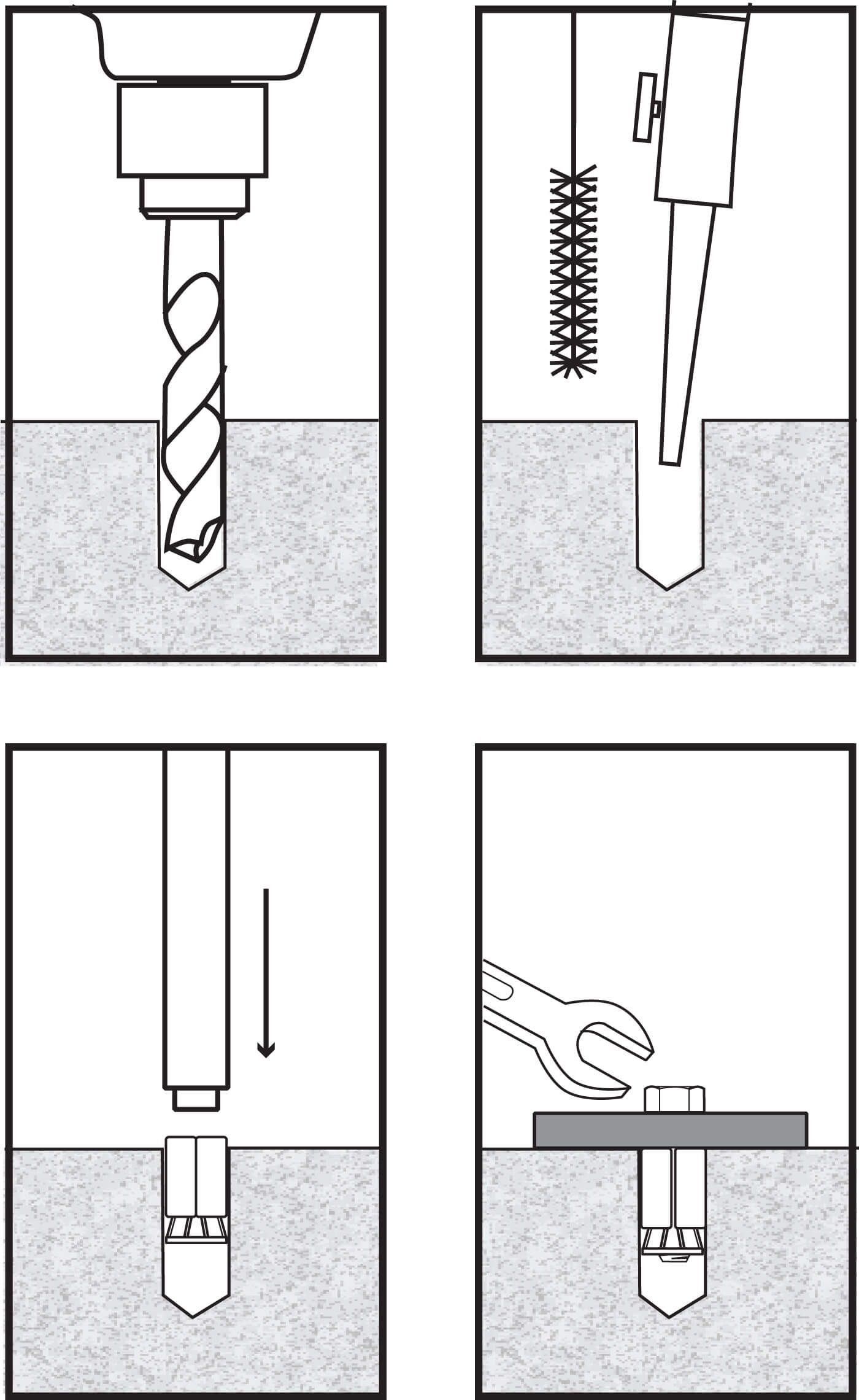 - Drill the hole equal to the nominal diameter of the anchor. To assure full holding power, do not ream the hole or allow the drill to wobble.