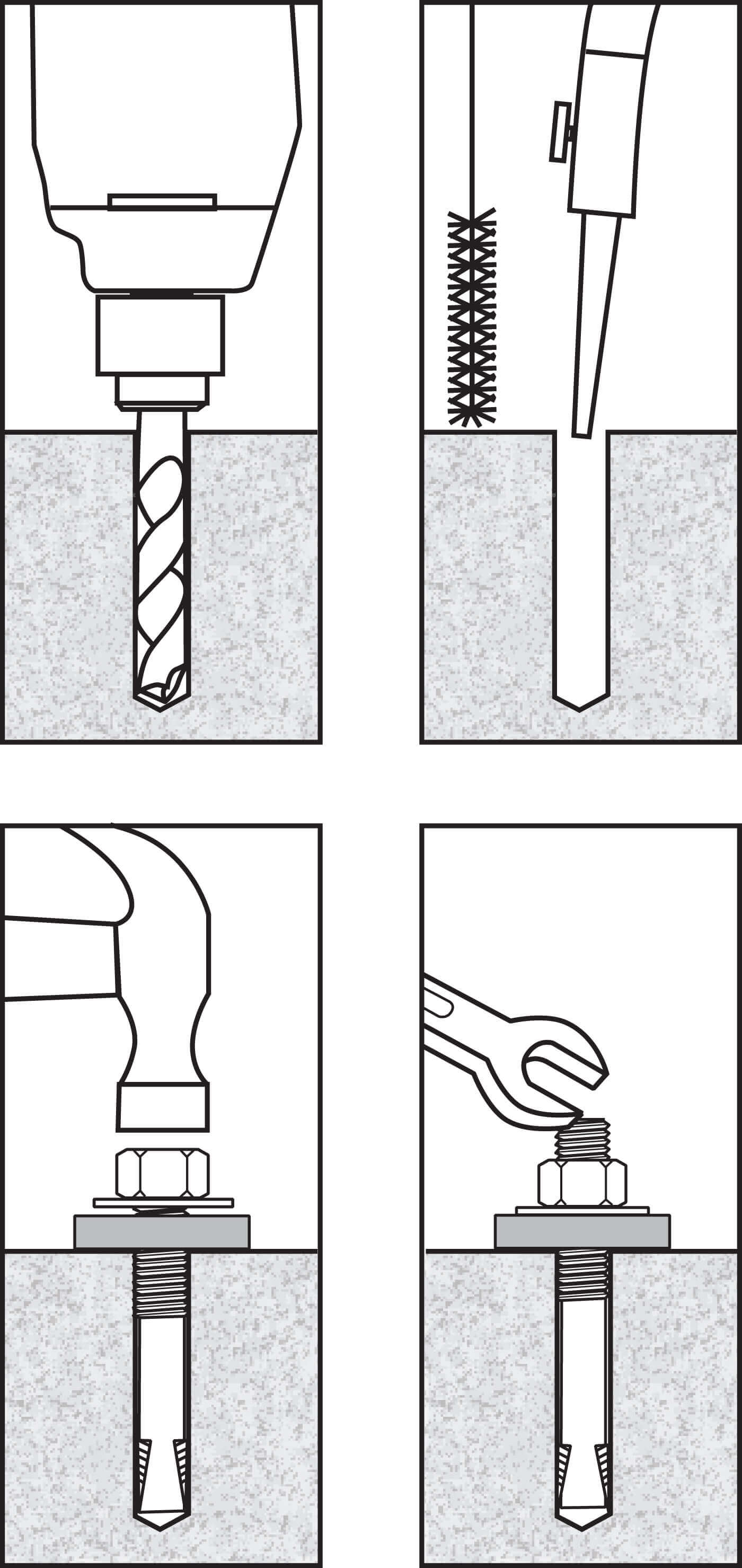 - Clean the hole using compressed air and a nylon brush. A clean hole is necessary for proper performance.