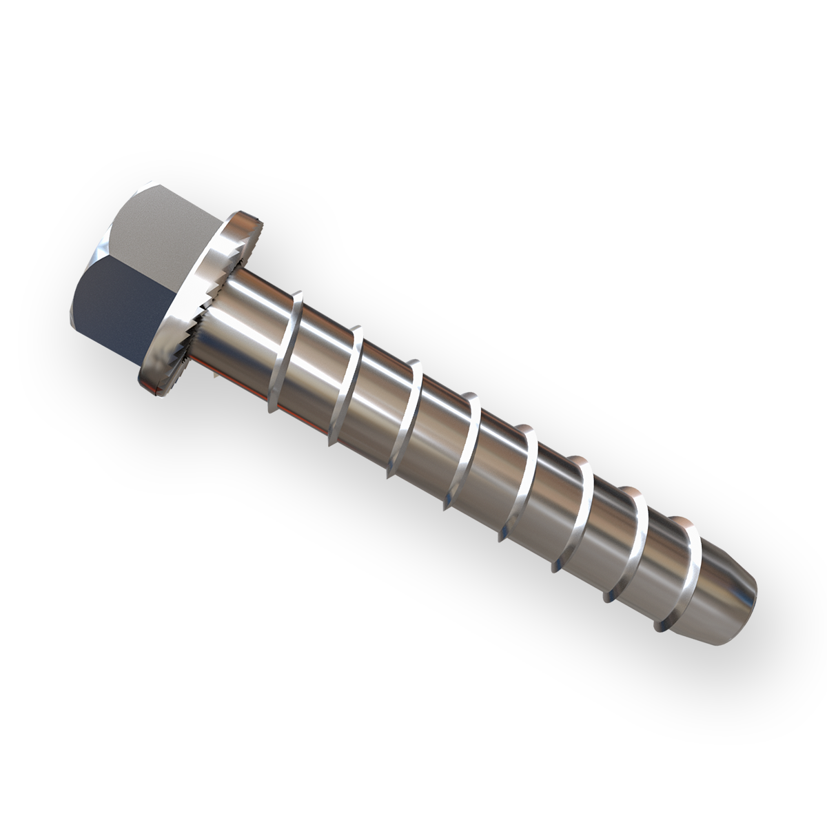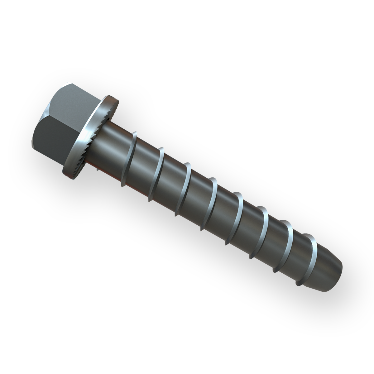 This heavy-duty bolt anchor with self-tapping threads offers a unique undercutting design for anchoring into concrete and masonry. No secondary setting in needed. This large diameter concrete screw provides high-strength performance with low installation torque.