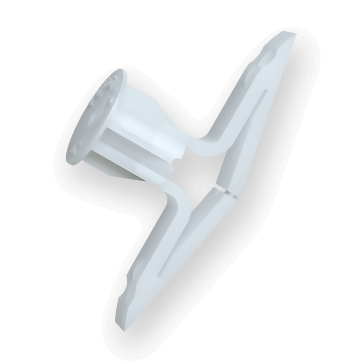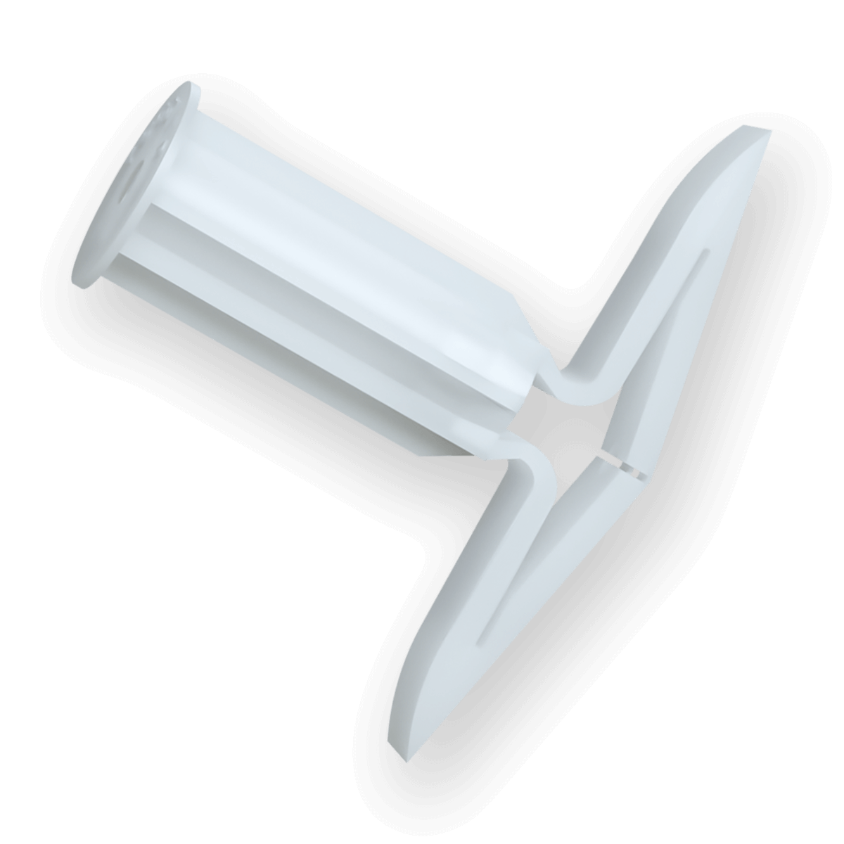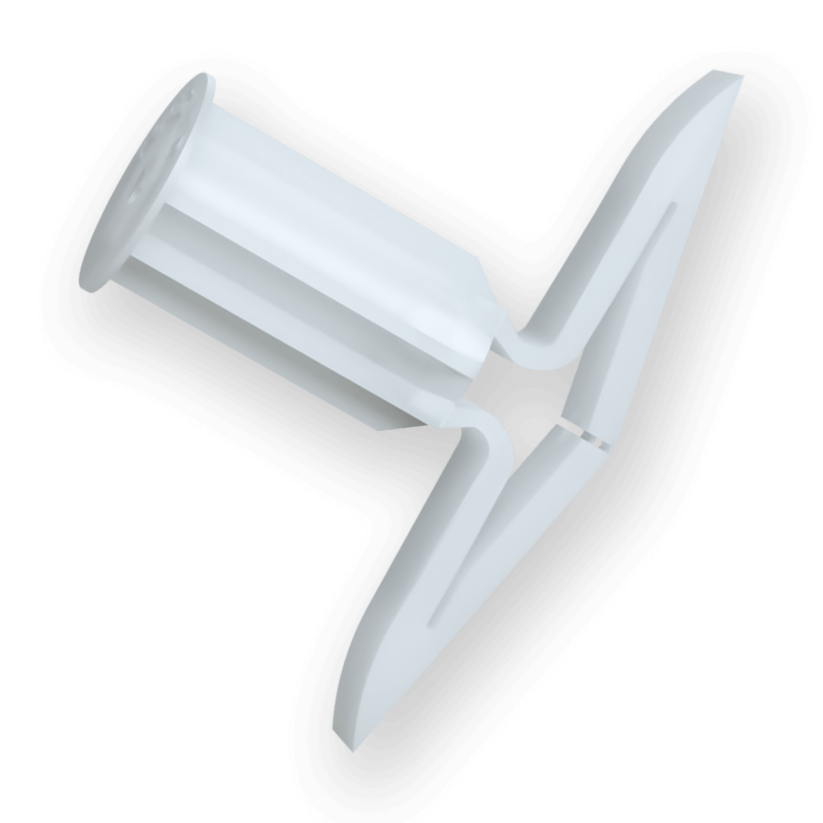 - Strongest of all plastic toggle anchors—reinforces the wall or ceiling & leads the load away from the hole
